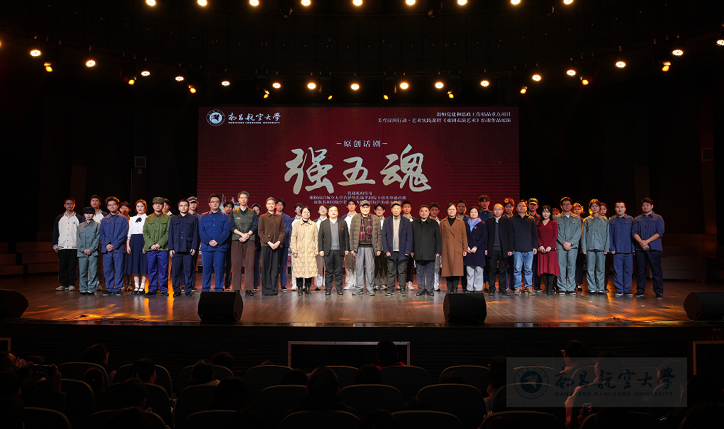 启航网讯 近日,我校原创话剧《强五魂》在学校音乐厅成功首演。学校党委常委、副校长陈玉华,党委组织部、党委宣传部、党委统战部、学工部、研工部等职能部门领导,以及洪都集团原党委副书记熊敏、原强五改总师李庄生等企业嘉宾与广大师生齐聚现场,共同见证这场致敬航空先辈、传承报国精神的文化盛宴。