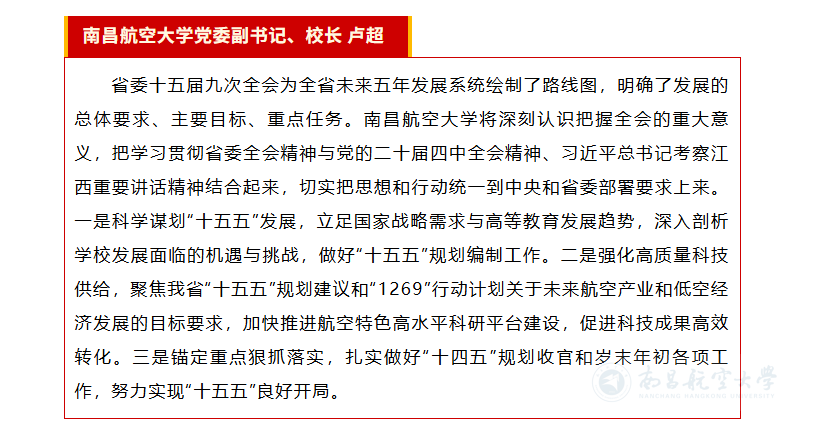您的位置: 首页 >新闻中心>媒体南航>详细内容 媒体南航 【江西省教育厅公众号】省委十五届九次全会在江西高校引起强烈反响 来源: 作者: 摄影: 发布时间:2025-12-12 浏览次数: 次 【字体:小 大】 媒体链接:https://mp.weixin.qq.com/s/OLv8DUF5QyWpq7Ncfr_tTw 责任编辑:李梦遥 相关内容 【打印正文】