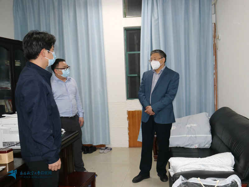 “晚上睡在哪里啊?”“被子够吗?”“休息得还好吗?”“在哪里洗漱啊?” “吃得怎么样啊”“家里孩子谁带啊?”“大家辛苦了,我代表学校和胜联校长来看看大家”“希望大家继续努力,克服困难,取得疫情防控工作的全面胜利”……每到一处,他都仔细查看大家工作和休息的地方,向工作人员道辛苦、鼓干劲,当看到有的工作人员把沙发、乒乓球桌和会议桌都变成了床位时,他动容地说“在这么简陋的条件下工作,大家辛苦了,真的很感动,学校感谢你们,学生感谢你们,有这样的战斗精神,我们一定能早日战胜疫情……”