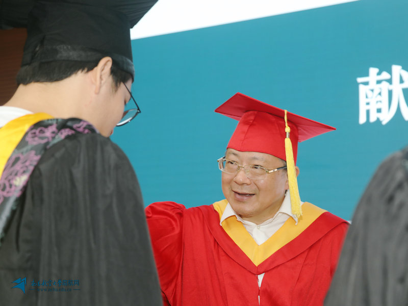 教师代表胡晓安在发言中寄语毕业班的同学们,把“团结自强、拼搏向上”的南航精神带走,把“日新自强、知行合一”的南航校训带走,把自己的青春年华融入到了祖国的航空发动机事业当中,敬畏人民生命、敬畏工程师职责、敬畏航空报国使命,争当一名对党忠诚、有家国情怀、技术过硬的航空发动机工程师。