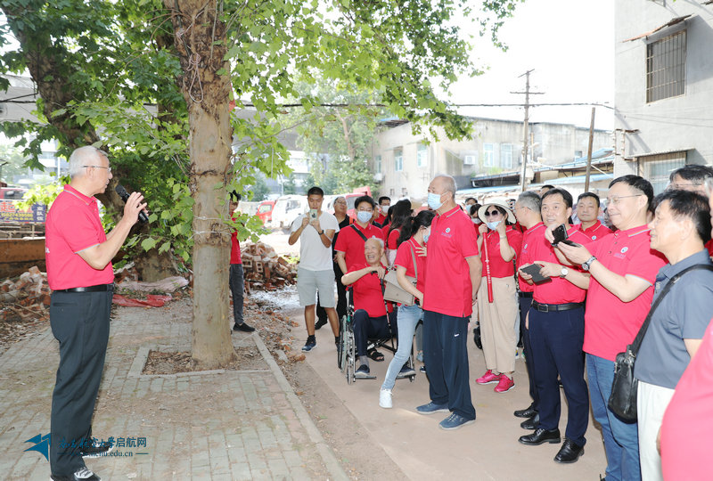 活动分两个阶段。在第一阶段,全体校友和参会教师乘车来到学校旧址——汉阳硚口区新合村,重访目前仅存的学校建校初期的二层楼校舍,感慨万千。这里的每一块青砖依然完好坚固,夏立先边走边介绍学校在汉口的创建和发展历史,并阐述了寻找和确认这座旧址的经过。当他介绍到根据校史记载和老校友回忆楼栋上有个五角星并顺手指向目标时,大家一齐目光流转,在找到那个落水管上锈迹斑驳但却棱角分明的五角星后,不禁发出感叹之声。