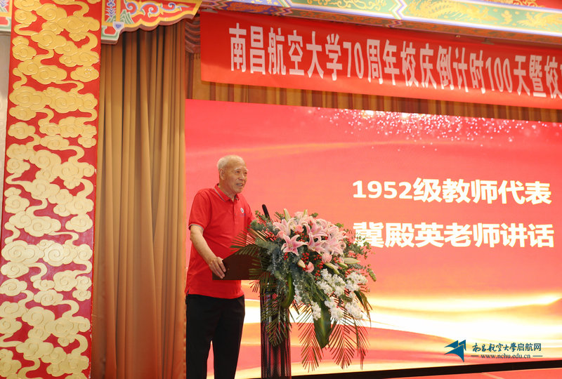 学校旧址参观结束后,全体校友师生回到室内会议现场,举行校庆倒计时100天暨“七秩芳华 逐梦远航”校旗传递活动启动仪式。仪式在激昂奋进的校歌声中拉开帷幕,副校长何兴道代表学校发表了热情洋溢的致辞。他指出,这次邀请大家回到学校初创的地方举办活动,不仅是为了纪念那些为学校的创建而付出辛勤劳动的师生,更是为了进一步坚守我们航空报国、航空强国的初心与使命。他强调,校旗传递活动不仅是70周年校庆祝福的传递,更象征着学校的精神文化、初心使命的传承;希望全国乃至全球校友积极参与校旗传递活动,在活动中进一步加深情感、凝聚力量、弘扬精神、激发动力、鼓足干劲,为建设高水平大贡献母校奉献更多智慧和力量。