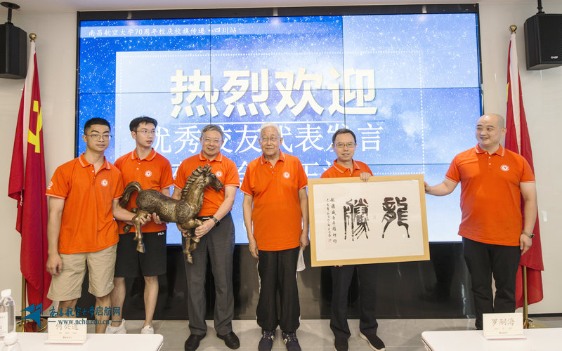 校友办就学校70周年校庆筹备情况作了详细介绍,随后,四川校友代表2000级校友王洵和55级校友蔡水金先后发言。他们深情回忆在母校的学习生活,感恩母校的精心培养,衷心祝愿母校发展越来越好。仪式上,蔡水金还将珍藏多年的青铜马文物和书法赠送给学校,表达对校庆校旗传递活动的支持。