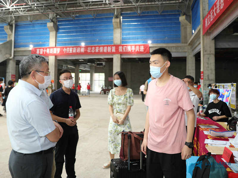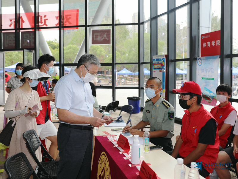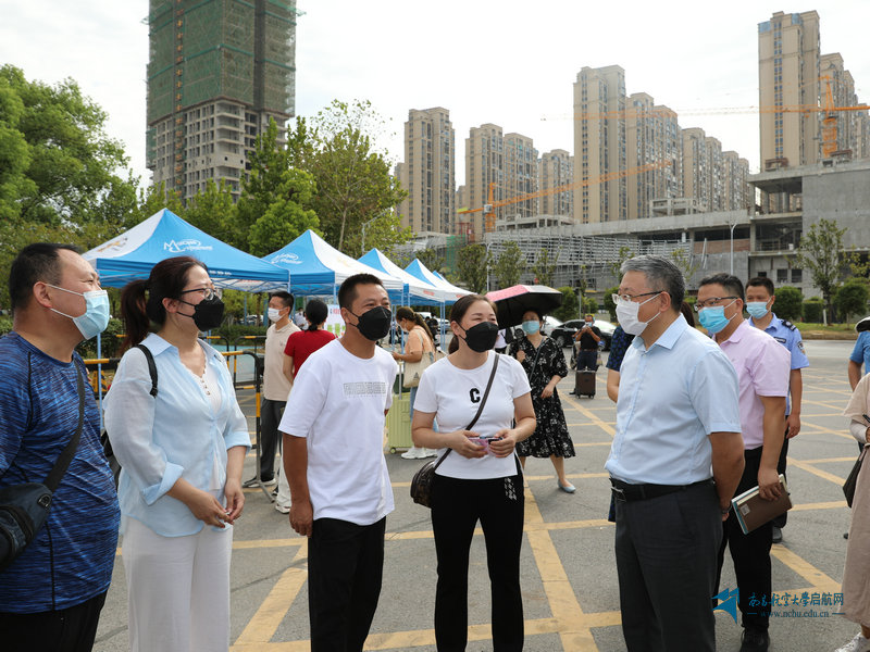 启航网讯 白露时节,秋意渐浓,随之而来的,还有2022级新生们的脚步。9月7日至8日,2022级的5345名新同学从全国各地汇聚来到南昌航空大学。报到第一天早上8点,党委书记罗嗣海,副校长熊震宇、代冀阳在党办校办、学工处、保卫处、校团委、校医院等部门相关负责人的陪同下来到学校迎新现场,了解迎新工作开进展及新生报到情况。