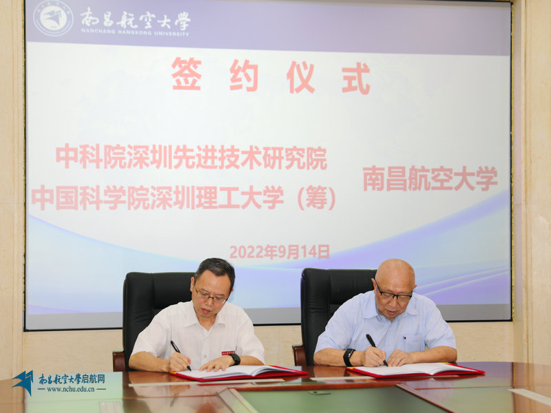 启航网讯 9月14日下午,我校在办公大楼21楼南会议室与中科院深圳先进技术研究院(以下简称“先进技术研究院”)、中科院深圳理工大学(筹)签订战略合作协议。会议邀请江西省发展和改革委员会党组成员、副主任,省数字经济办副主任,省发改委数字经济“一号发展工程”专项组组长李庆红到会指导。先进技术研究院院长、中科院深圳理工大学(筹)筹备办主任樊建平,中科院深圳理工大学(筹)校长、筹备办副主任赵伟,我校党委书记罗嗣海,副校长何兴道、陈震出席签约仪式,先进技术研究院教育处、教学事务处、监审处、学生处、教育处教育合作发展办、院企合作与创新发展处,江西省发展和改革委员会社会处、省生态文明研究院经济所综合室及我校科技处、国内合作与联络处、研究生院、信息工程学院、航空制造工程学院、软件学院等相关单位负责人参加。