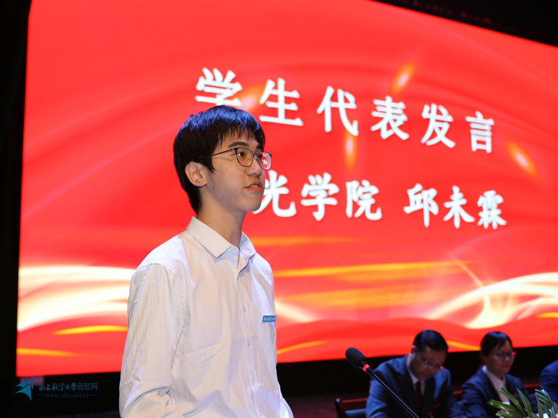 测试与光电工程学院测控技术与仪器专业210815班邱未霖代表南航全体学生向教师们表达了诚挚的祝福和衷心的感谢,并表示自己将在前进的道路上策马扬鞭,以饱满的热情投入到学校学习和社会建设中。