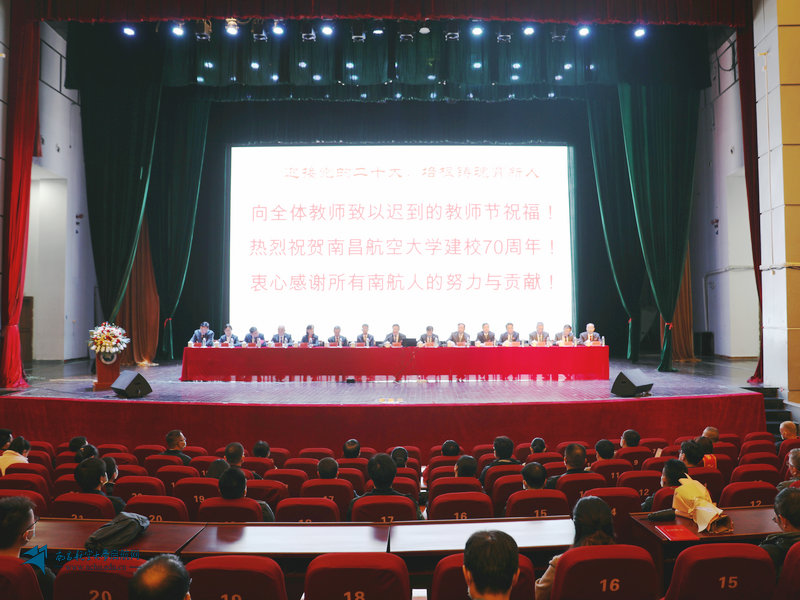 罗嗣海代表学校向全体教师致以节日问候,热烈祝贺南昌航空大学建校70周年,衷心感谢所有南航人为学校建设发展付出的辛勤努力;希望广大教职工继续耕耘不辍,砥砺前行,以无私奉献的高尚品德和勇于进取的开拓精神为南航的发展贡献力量。讲话中,罗嗣海带领大家学习了习近平总书记关于教育的重要论述,并提出了三点要求。
