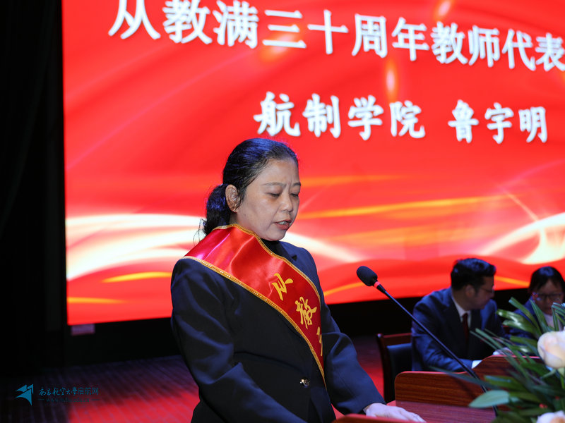 作为优秀教师代表,航空制造工程学院鲁宇明老师深情回顾了三十年的从教生涯,表达了自己矢志不渝的初心和信念。环境与化学工程学院汪月华老师代表光荣退休教职工表达了对南航的感谢和不舍,同时也为自己是南航的一份子感到骄傲和自豪。