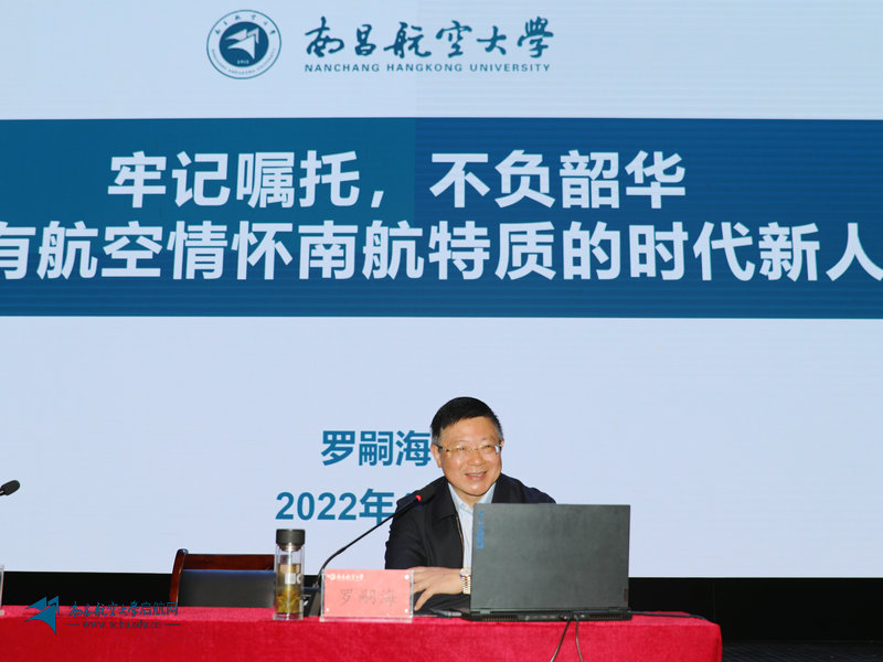 随后,罗嗣海为全体新生代表作了题为《牢记嘱托,不负韶华,做有航空情怀南航特质的时代新人》的报告,与同学们共同学习习近平总书记的重要论述,把牢成长方向;学习航空历史与精神,厚植航空情怀;学习校史校情,锻造南航特质。罗嗣海勉励全体南航学子:要珍惜宝贵时光,争做时代新人;要牢记校训,做到“日新自强,知行合一”;要正确地导航,遵循习近平总书记指引的方向;要强劲地启航,努力实现德智体美劳全面发展;要持久地续航,弘扬学校校风与践行学校校训;要勇敢地远航,传承航空光荣历史和报国精神。