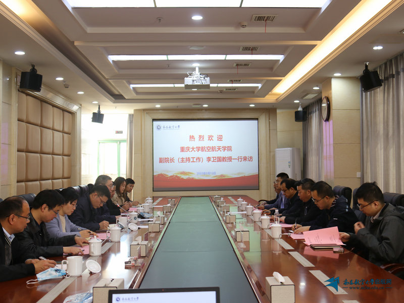 启航网讯 3月13日,重庆大学航空航天学院副院长(主持工作)李卫国一行来校交流。副校长郭正华在办公大楼21楼南会议室与来宾座谈,航空宇航学部、材料科学与工程学院、航空制造工程学院、飞行器工程学院、通航学院负责人及相关教师参加。
