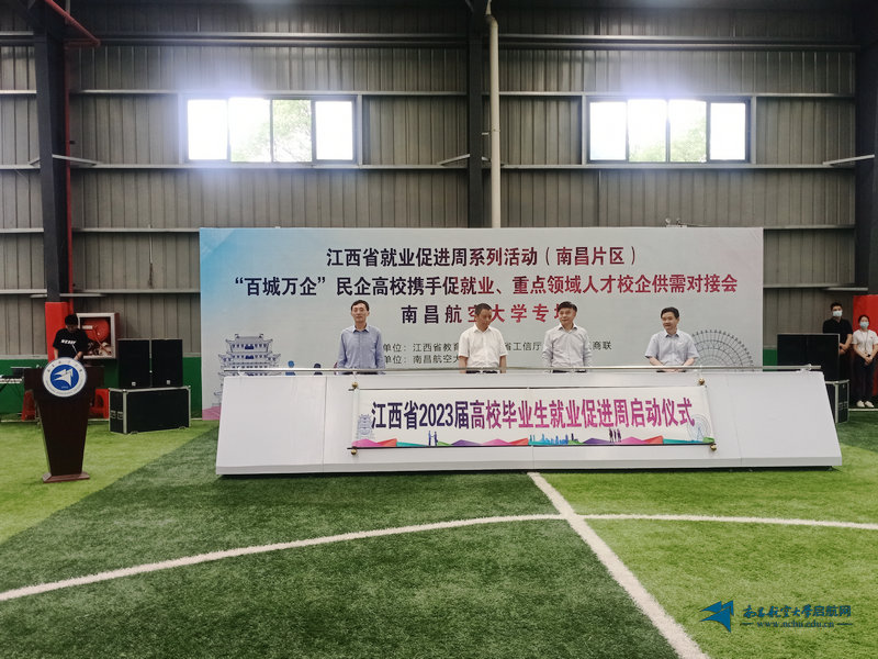 启航网讯 为深入学习贯彻党的二十大精神,落实党中央、国务院关于高校毕业生就业工作的决策部署,抓住高校毕业生就业工作关键期,全力促进高校毕业生顺利就业, 5月26日上午,江西省2023届高校毕业生就业促进周启动仪式暨“百城万企”民企高校携手促就业、重点领域人才校企供需对接会在我校室内足球场举行。省教育厅教育评估监测研究院院长丁国华,省工信厅二级巡视员熊健,省工商联一级巡视员刘星平,我校党委常委、副校长熊震宇出席活动,省教育厅、省工信厅、省工商联有关同志,企事业单位招聘代表,在昌兄弟院校及我校师生代表共计1500余人参加。