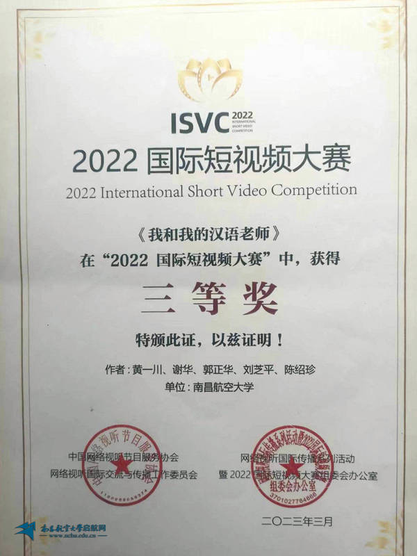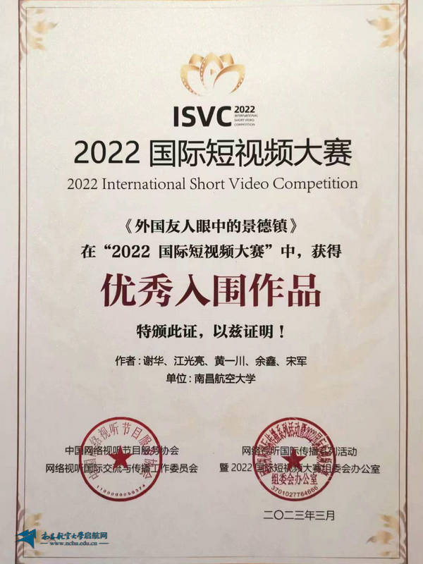启航网讯 3月23日晚,由国家广播电视总局、山东省人民政府指导,中国网络视听节目服务协会网络视听国际交流与传播工作委员会、山东省广播电视局、济南市人民政府主办的2022国际短视频大赛“绽放之夜”暨2023“新时代•新视界”视听共享全球播映启动仪式系列活动在山东济南举行。由我校党委宣传部、国际合作与交流处、国际教育学院共同制作并选送的作品《我和我的汉语老师》获得三等奖、《外国人眼中的景德镇》获优秀作品奖,我校作为参与单位获特殊贡献奖。