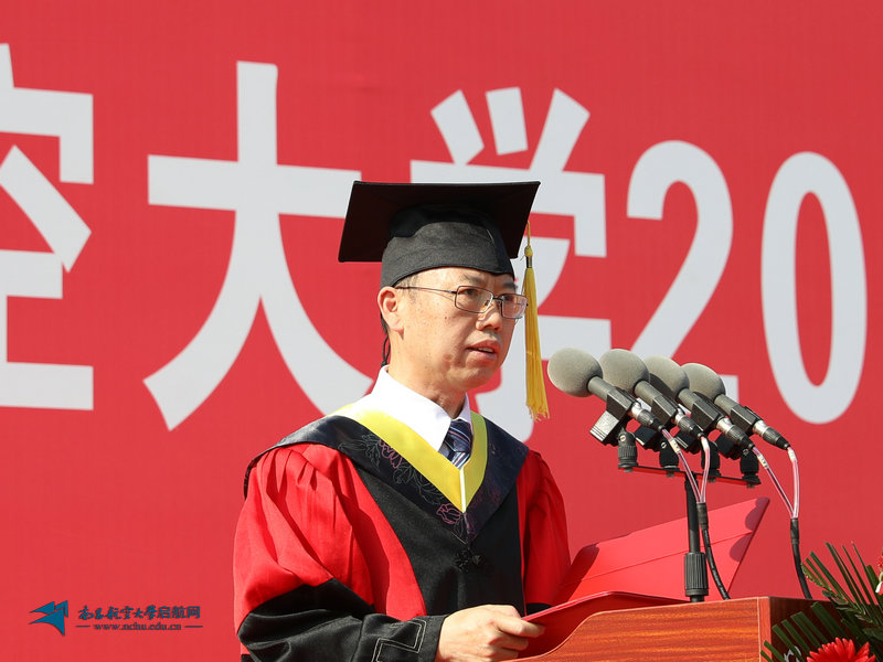 启航网讯 6月12日上午,南昌航空大学2023年毕业典礼暨学位授予仪式在田径运动场隆重举行。我校79级金属腐蚀与防护专业优秀校友,中国航空工业集团公司特级专务、质量安全部部长,运20研制现场总指挥唐军,学校党委书记李德平,党委副书记、校长卢超,党委副书记陈震,党委常委、副校长周世健,党委常委、副校长何兴道,党委常委、副校长熊震宇,党委常委、副校长代冀阳,党委常委、副校长郭正华,党委常委、副校长汤华中,党委常委、组织部部长邓瑾,党委常委、宣传部部长刘芝平和毕业生家长代表出席典礼。学校各职能部门负责人,各学院党政负责人、党委副书记、毕业班辅导员、教职工代表与毕业生们齐聚一堂,共同见证这一神圣庄严的时刻。毕业典礼由党委常委、副校长熊震宇主持。