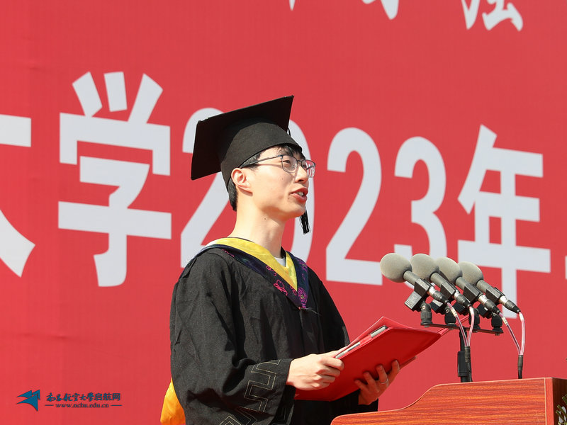 作为本科毕业生代表,测试与光电工程学院戴明新同学回忆了大学生活的点点滴滴,表达了对母校、恩师、同窗和父母亲友的感激之情,并号召广大毕业生担当时代大任、实现远大梦想。