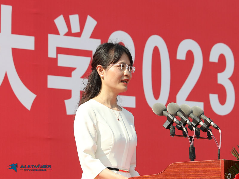 教师代表、江西省井冈学者特聘教授、江西省思政课名师工作室主持人、江西省“十大优秀思政课教师”、马克思主义学院院长郭莉教授殷切寄语学子,把个人梦融入中华民族伟大复兴的中国梦,让青春在贡献祖国中绽放异彩,以奋斗的姿态激扬青春,在拼搏的青春中成就事业华章。