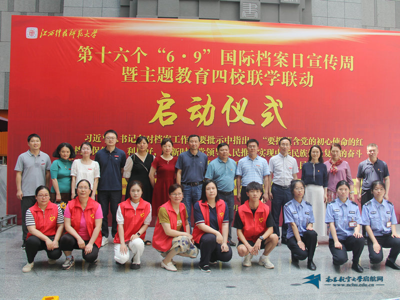 我校与江西科技师范大学、华东交通大学、豫章师范学院四所高校联动,共同举行了启动仪式及档案实物展。档案馆根据自身馆藏优势并结合各校实际,设计了档案宣传展板,展出了许多珍贵的实物档案。现场还设置档案装订、整理等多项沉浸式体验。