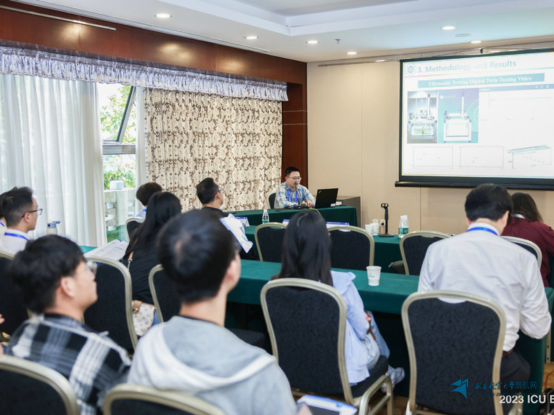 2023国际超声大会共设置了15个分会场,我校独立承办的“航空构件无损评价及应用”分会场由卢超教授担任主席,刘远博士和郭双林博士分别作了题为《Non-elliptical probability imaging method for anisotropic composite plates based on ultrasonic guided waves》和《Optimized global matrix method for computing dispersion curves of aerospace composite plates having a large number of layers》的报告,引起了与会专家的深切关注,并进行了充分交流和讨论。