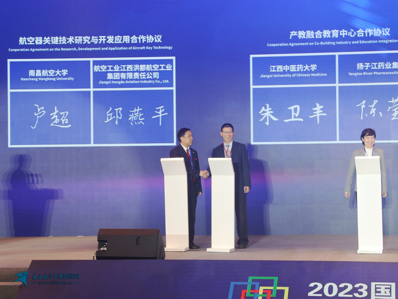 开幕式现场,还举办了相关签署、授牌、揭牌及签约仪式,赣、鄂、湘、川、渝、贵、藏七地共同签署了《江西会区国际产学研用合作共建共享机制》,6个国际产学研用学科联盟授牌、8个合作平台揭牌、9个合作项目签约。我校党委副书记、校长卢超为南昌航空大学-江西省电力建设有限公司能源与环境创新应用联合实验室揭牌,并代表学校与航空工业江西洪都航空工业集团有限公司签署航空器关键技术研究与开发应用合作协议。