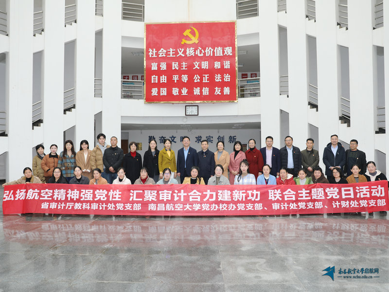 启航网讯 为深入开展学习贯彻习近平新时代中国特色社会主义思想主题教育,充分发挥联学联建优势,聚焦党建与业务融合,12月5日,省审计厅教科审计处党支部与我校党办校办、审计处、计划财务处党支部联合开展了“弘扬航空报国精神强党性,汇聚审计合力建新功”主题党日活动。省审计厅党组成员、副厅长胡雅萍及审计组全体成员,我校党办校办、审计处、计划财务处党支部全体党员参加活动。我校党委书记李德平,党委常委、副校长熊震宇应邀出席。