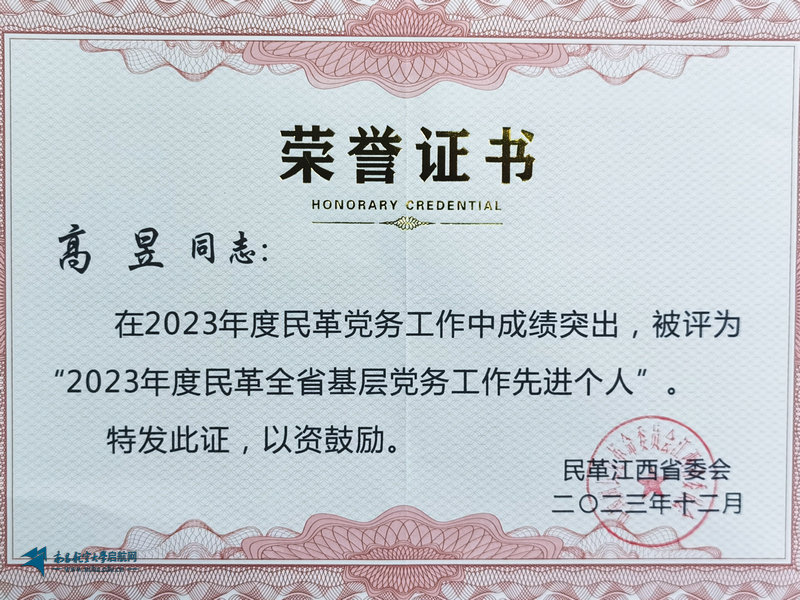 您的位置: 首页 >新闻中心>南航要闻>详细内容 南航要闻 民革南昌航空大学委员会荣获多项省级表彰 来源:民革南航委员会 作者:张人方 摄影: 发布时间:2023-12-28 浏览次数: 次 【字体:小 大】 启航网讯 12月26日,在民革江西省委会召开的民革全省组织工作会议上,民革南昌航空大学委员会因2023年度出色的工作表现荣获多项表彰。 其中, 在2023年度主题教育日活动中,民革南昌航空大学委员会荣获民革全省“凝心铸魂强根基、团结奋进新征程”主题教育日活动“先进基层组织”;在人才发展工作中,荣获民革全省“高层次人才发展工作先进单位”称号,全省仅8个基层组织获此殊荣;主委高昱荣获2023年度民革全省“基层党务工作先进个人”称号。 责任编辑:李言金 【打印正文】