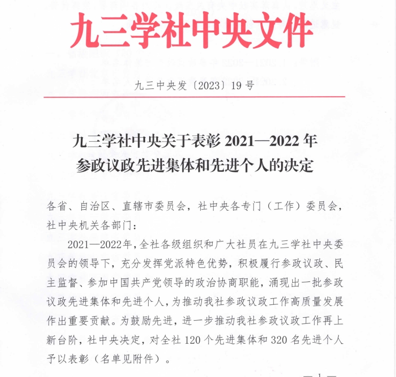 我校教师涂继亮获九三学社中央“参政议政先进个人”称号