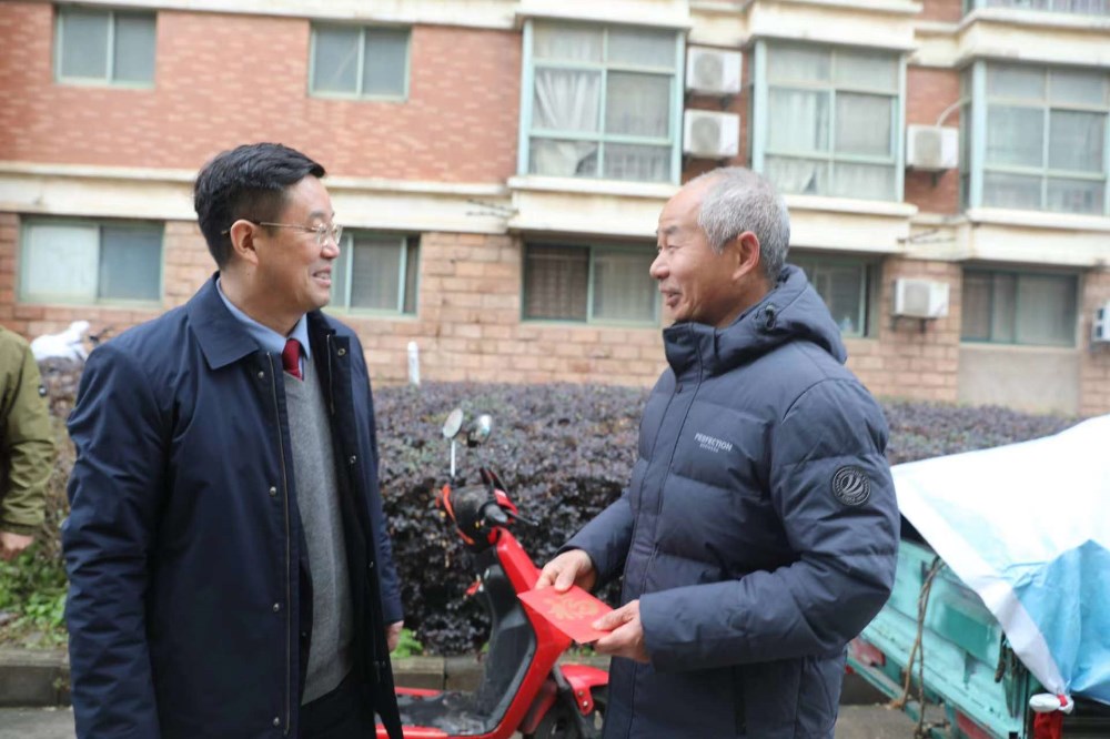 在老校区,李德平来到离退休老同志吴稚聪家中,关切地询问老同志的身体状况,嘱咐他保重身体。吴稚聪对学校的牵挂和祝福表示了衷心感谢,并祝愿学校在新的一年里各项事业取得新的更大发展。