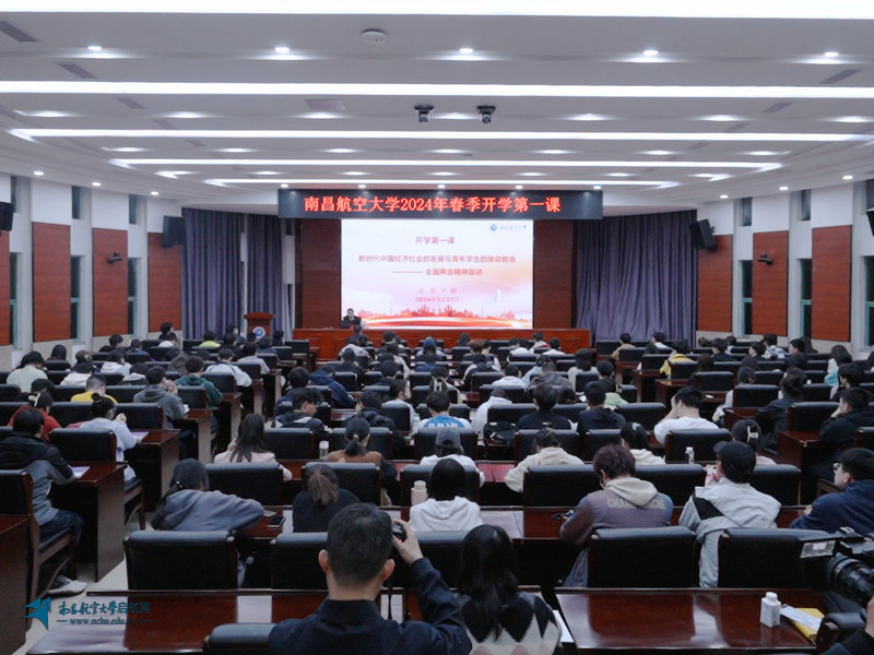 启航网讯 为深入贯彻习近平总书记在全国两会期间重要讲话和全国两会精神,引导学生厚植爱党爱国爱社会主义情怀,3月27日晚,我校党委副书记、校长卢超在逸夫楼第二报告厅开讲春季“开学第一课”,测试与光电工程学院、文法学院百名学生到场聆听。