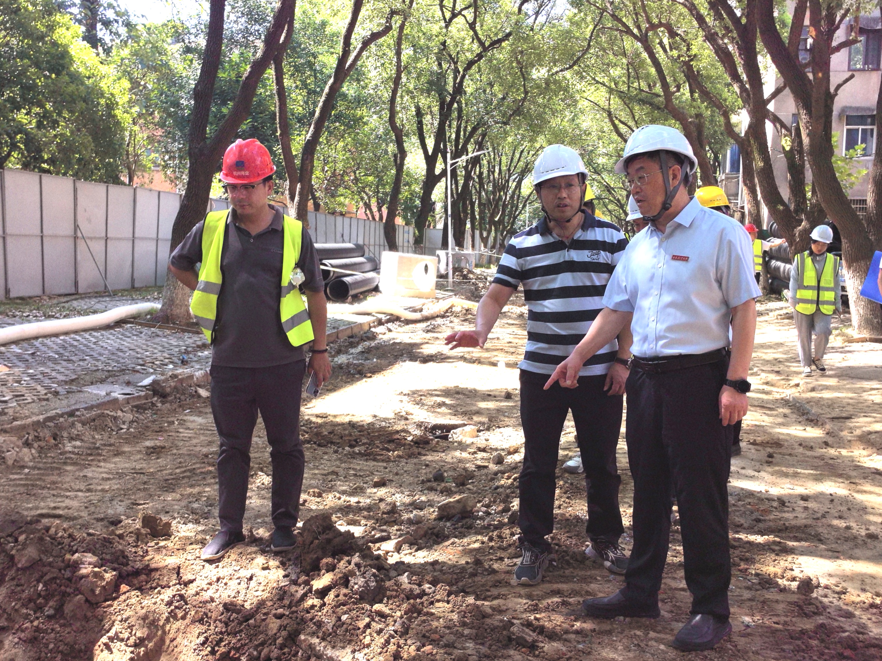 8月1日上午,校党委书记李德平带队深入上海路校区检查指导雨污分流改造现场,党办校办、基建处、后勤管理处、离退休职工工作处等部门的相关负责人陪同。