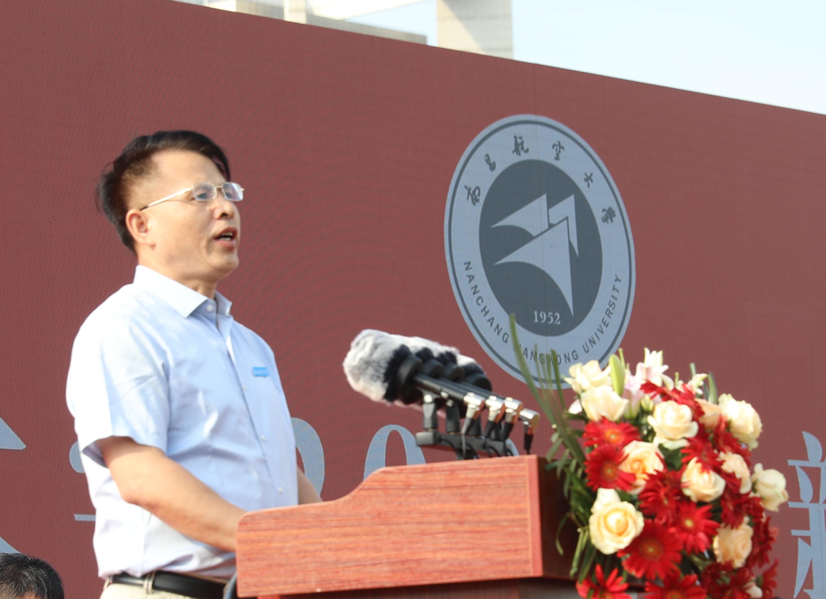 卢超以《争做“忠诚奉献 自力更生 艰苦奋斗 勇攀高峰”的航空人》为题,代表学校党委书记李德平、全体教职员工和海内外校友,向丰和南大道696号的新主人表示热烈的欢迎!卢超指出,南昌航空大学是一所以“航空”命名的大学、是一所矢志航空报国的大学、是一所立志航天强国的大学、更是一所因航空而再次腾飞的大学。学校因航空而生,依航空而立,伴航空而长,应航空而兴,航空是学校生生不息的命脉,其背后的基因密码,就是一代代昌航人始终弘扬和践行“忠诚奉献、自力更生、艰苦奋斗、勇攀高峰”航空报国精神。