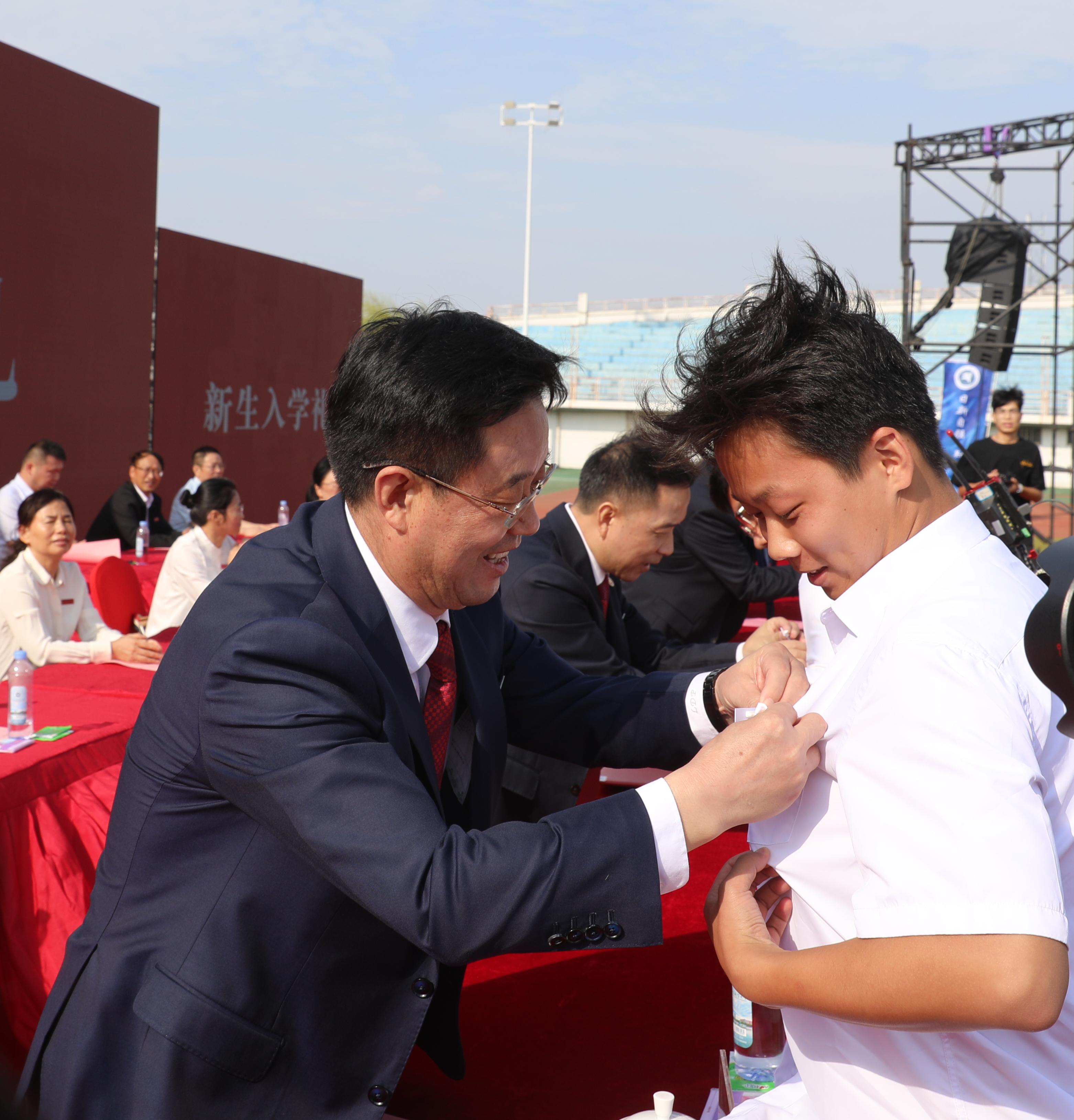 典礼上处处体现了“昌航”细节。校领导为新生代表佩戴校徽,希望自今日起,同学们能够始终把校园当家园,始终跟学校同呼吸、共命运,奋力书写绚丽的青春华章,和学校一同向着光荣与梦想,奋楫扬帆再出征!