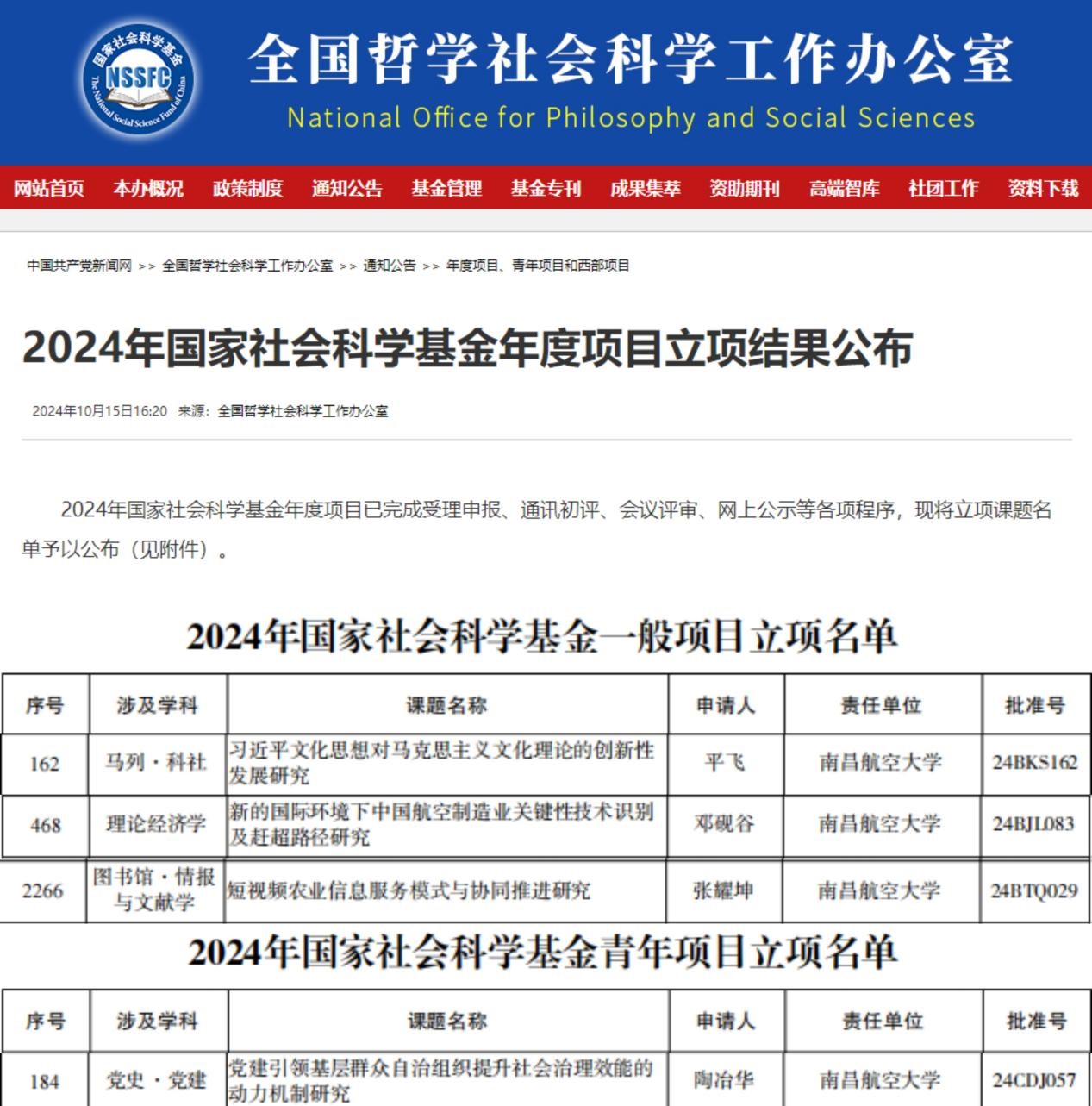 启航网讯 日前,全国哲学社会科学工作办公室公布了2024年度国家社科基金年度项目立项名单,我校获批4项,其中一般项目3项,青年项目1项,获批总数位列全省第五,省内工科院校中排名第一。
