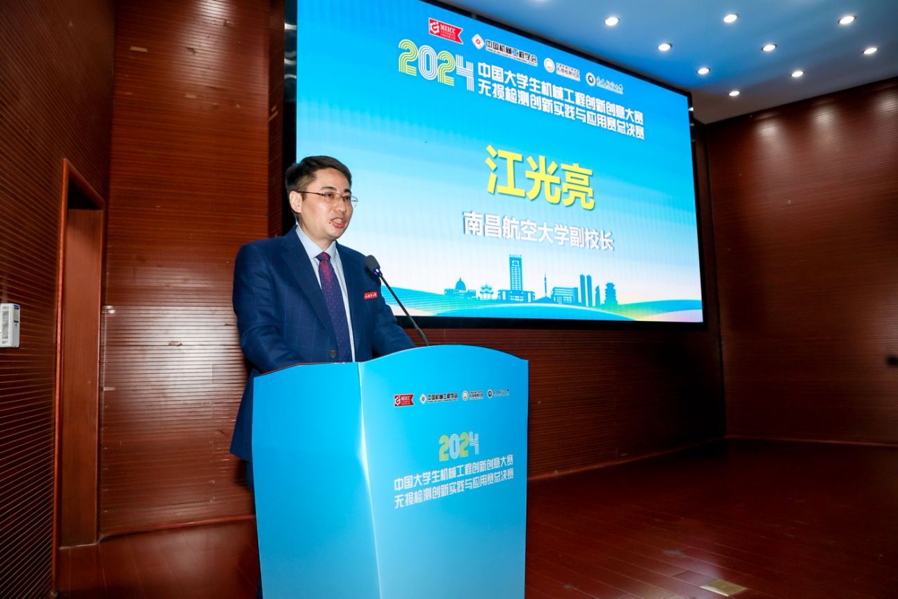 江光亮在致辞中表示,此次比赛在南昌航空大学举办,是中国机械工程学会、无损检测分会对学校的信任和支持。建校70多年来,学校致力于服务国家航空国防事业和江西经济社会发展,现拥有22个航空特色专业,为我国无损检测领域办学最早、规模最大、技术最全的高校,被誉为中国无损检测人才培养的“摇篮”,现拥有唯一的无损检测技术教育部重点实验室等高水平科研平台。江光亮指出,此次总决赛汇聚了众多高校的优秀选手,希望大家能在比赛中展示才华、交流学习,为未来打下坚实基础。预祝总决赛圆满成功,南昌航空大学也将竭尽全力,为大赛提供最好的服务和保障。