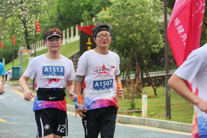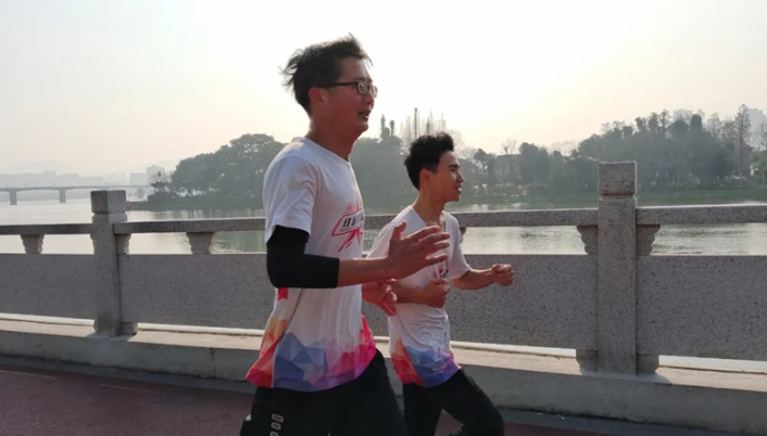 有一些先天性失明的盲友甚至不知道该如何跑——开跑时,一手放在身侧,原地踏步,却无法向前挪动;又或者双手习惯性地朝前伸着而不会摆臂。好在志愿者们都十分尽心尽力。胡亮的学生、社团理事长满鑫源于2022年考入环境设计专业就读。从2022年秋天开始,小满和盲友陈忠旭渐渐成为相对固定的“搭子”。每次活动接送、声音指导、跑步陪伴,小满都尽心尽力。茂名、吉安、于都……截至目前,两人共跑了六七十场,参与马拉松5次。在胡亮的引导下,小满希望未来能够以“无障碍设施建设”作为自己的择业方向。
