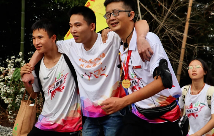 一年后,一个震撼世界的瞬间深深打动了胡亮——2021年东京残奥会盲人运动员刘翠青与来自江西的领跑员徐冬林一起创造了新的残奥会纪录……“震撼!激动!兴奋!”作为一名教师,一名党员,胡亮觉得,自己总还要为学生留下些什么。2022年端午节前后,作为美术系第一党支部书记,胡亮把支部20多名同学组织起来,宣讲、培训,一起观看残奥会短片。“同学们,我们是不是可以带动更多盲友跑起来?”胡亮的号召得到同学们的大力支持,就这样,江西省首个“志愿者+视障人士”模式的助盲跑团正式成立了。团队制定规章——每周例跑一次;每月进行一次长跑拉练;每年组织参与徒步、出游、跑马拉松等主题活动。大家要把助力盲友跑步这件事扎扎实实做起来。