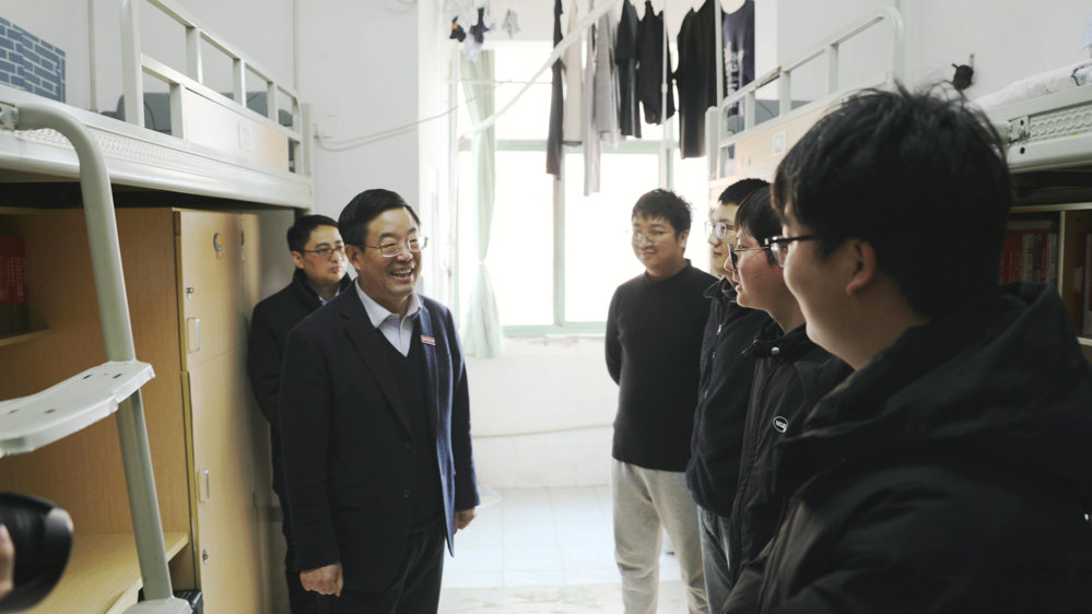 在随机走访学生宿舍的过程中,李德平与大四学生深入探讨职业选择,勉励大家“将个人理想融入强国建设浪潮之中”。在与大一学生交流时,他叮嘱同学们要重视数学等基础学科的学习,并勉励大家树立远大抱负,努力学习专业知识,为未来的职业生涯奠定坚实基础。针对调研中反映出的职业生涯规划需求,李德平现场开展工作部署,强调学生工作部门要做好顶层设计,积极引导各学院联合引进名校及行业内专家,为学生提供更加精准、有效的职业指导和实习就业机会。