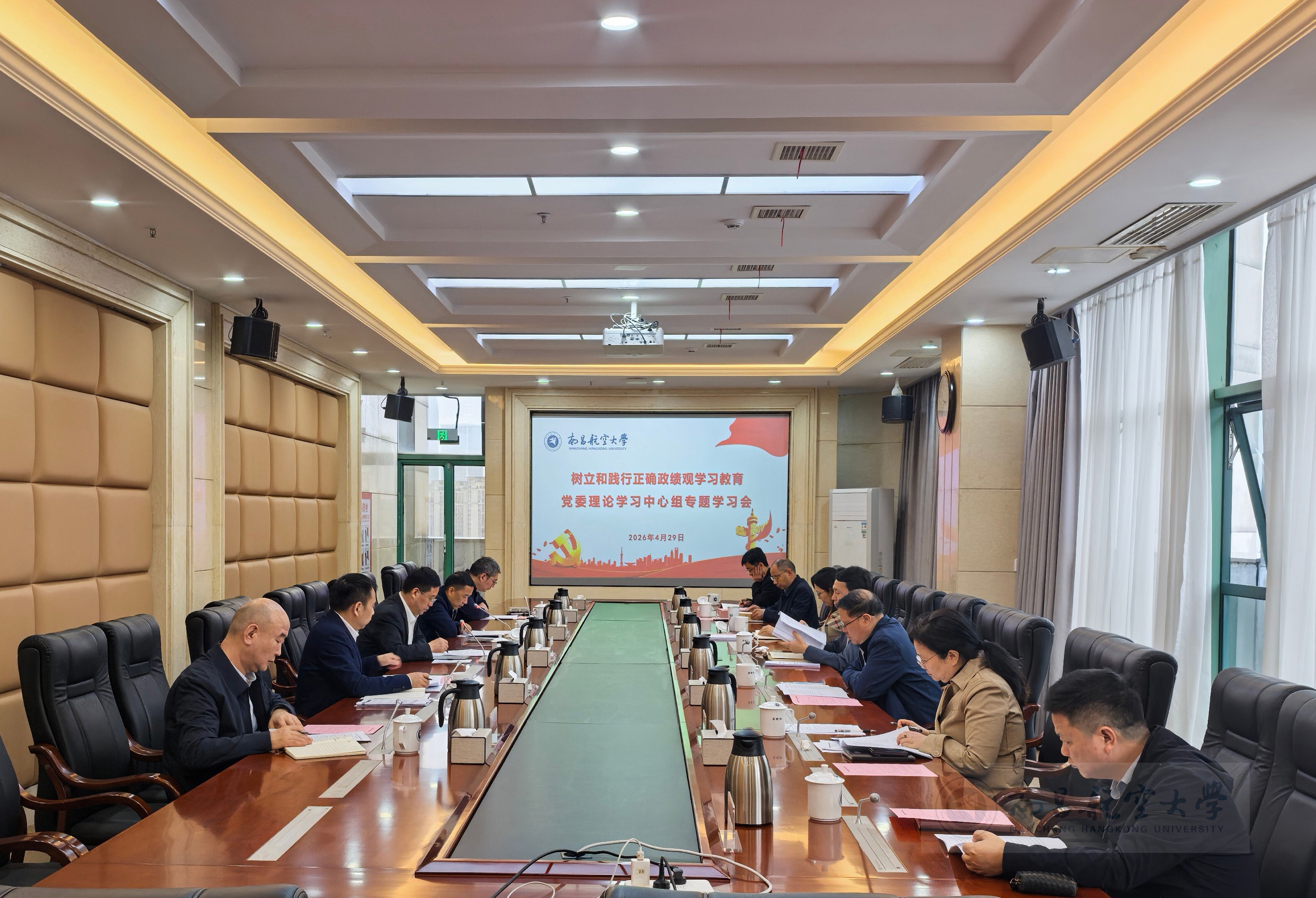 李德平强调,正确政绩观是检验党员干部党性修养、宗旨意识和责任担当的“试金石”,全校上下要深刻领会正确政绩观核心要义与实践要求,将正确政绩观贯穿于办学治校、立德树人的全过程。要始终严明党的政治纪律和政治规矩,不断提高政治判断力、政治领悟力、政治执行力,铸牢对党忠诚、牢记为民初心、深化自警自省,确保政绩经得起政治的检验,以坚强党性坚守正确政绩价值导向。要深刻把握正确政绩观的实践要义,压实各级党组织书记全面从严治党“第一责任人”责任和班子成员“一岗双责”,强化典型案例示范、一线师生榜样选树,深化航空特色建设,聚焦国家实验室江西创新中心建设、博士点申报、“一校三区”建设、研究院建设等重点任务,以“时时放心不下”的责任感履好职、尽好责,确保“十五五”开好局、起好步,用实实在在的业绩践行正确政绩观。要锻造践行正确政绩观的过硬作风,坚持实事求是、求真务实,纵深推进纠“四风”树新风,强化党风廉政教育,增强党员干部廉洁意识和自律能力,以严明纪律保障正确政绩观落地生根。