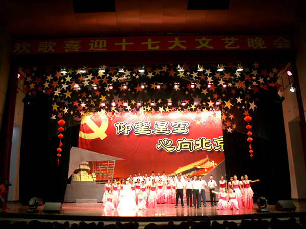 为迎接党的十七大的召开,抒发全校师生对党的敬爱之情,我校同学自发组织了“仰望星空、心向北京——欢歌喜迎十七大”文艺晚会,以合唱、独唱、朗诵、舞蹈等活泼多样的艺术形式,唱响心中的颂歌,唱出当代大学生的青春梦想与激情,表达我们努力成材、报效祖国的决心。