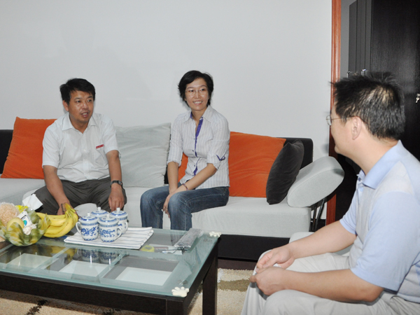 启航网讯 9月29日下午5时,值此国庆六十周年和中秋佳节来临之际,校长余欢在人事处副处长季俊峰等相关人员的陪同下,走访慰问了我校新引进的特聘教授和博士代表,向他们致以亲切的问候和节日的祝贺。