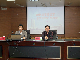 王龙锋教授首先根据高等教育所面临的新形势和所肩负的新使命,诠释了大学教师职责的新内涵。王教授认为,教师的职责不仅要传道、授业、解惑,更要激发。他说激发学生悟道比传道更重要,激发学生学会学习比授业更重要,激发学生独立思考比解惑更重要,教学现状呼唤激发教育。清晰地解答了现代教学语境下大学教师职责究竟是什么及为什么的问题。