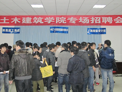 启航网讯为进一步加强学院毕业生就业工作、拓宽建筑类专业毕业生就业渠道。3月16日,土木建筑学院联合南昌建工集团、中铁二十四局等10多家单位在大学生活动中心317室举办2012届毕业生专场招聘会。此次招聘会结合学院2012届毕业生的实际情况和各大企业的用人需求,积极服务于广大毕业生和用人单位,为供需双方搭建“双方选择,自主择业”的平台。