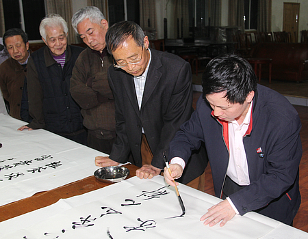 启航网讯 4月20日晚,为了弘扬中国传统文化,抒发时代豪情,由学校书法协会主办,离退休处协办的书法笔会在上海路校区活动中心举行,老领导孙一先、骆欣荣、党委宣传部部长饶国宾等50多位书法爱好者欣然赴会。活动由校书法协会会长江山主持。