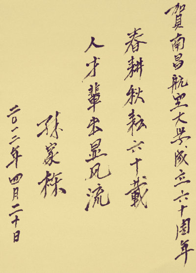 为学校60华诞题词的还有王永志院士、谢光选院士、原中国航空工业朱育理、张洪飚等老领导。