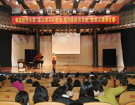 抒壮志科学发展谱新篇,展豪情齐心兴校创辉煌。在南昌航空大学建校60周年、“学习石秋杰”活动深入开展之际,由校工会、党委宣传部、教务处、人事处联合举办的教职工演讲比赛围绕“深入学习石秋杰,我为昌航作贡献”主题,深入发掘我校爱岗敬业中的先进人物和典型事迹,展现我校石秋杰式的教职工高尚师德师风,进一步树立昌航人新形象,推进优良校风教风学风建设,全面提升育人质量,积极为学校作贡献。