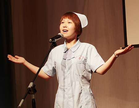 音乐学院林涛老师以歌曲《爱的奉献》开头,在钢琴声中讴歌了该院德艺双馨、大爱无疆、用生命的火炬为学生护航的李勤老师的感人事迹。春蚕到死丝方尽,蜡炬成灰泪始干。是热爱和责任,让她对自己的工作如此的坚定和执着;是热爱和责任,让学院的建设和学生的教学都取得了骄人的成绩。