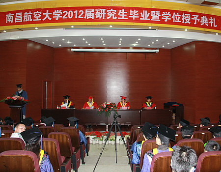 启航网讯 6月26日下午,南昌航空大学2012届研究生毕业暨学位授予典礼在逸夫楼学术报告厅隆重举行,校长余欢教授出席典礼并讲话。研究生学院党委书记李明俊教授、各学院主管研究生工作的副院长、全体2012届研究生毕业生出席学位授予典礼。典礼由学校副校长、研究生学院院长黎明教授主持。