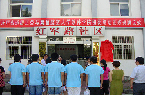 为贯彻落实引导大学生走入基层,服务社会这一理念,积极响应关于解决基层经济社会发展和人民群众生产生活中的实际需求这一目标。6月30日上午,经过数小时的路途,南昌航空大学软件学院暑期“三下乡”社会实践服务队进入井冈山市红军路社区开展了主题为“服务社区,共建和谐”的社会实践活动。活动一开始,实践队与社区领导共同举行了隆重的挂牌仪式,并宣告“南昌航空大学软件学院暑期社会实践基地”正式落成。随后,队员们便分批进入居民家中进行义务电脑维修,细心、耐心的为他们指导如何保护以及使用电脑,而且还通过发放有关电脑维护常识的宣传单,旨在让他们了解关于电脑方面的常识。接着,队员们通过用ppt的形式在社区中开展了电脑知识讲座,在为居民讲解的同时还耐心的解答了他们的提问。队员们专业的指点、娴熟的技术以及精彩的讲解赢得居民的阵阵掌声与声声赞扬。最后,社区有关工作人员还为实践队准备了一场精彩的井冈山革命斗争史教育课,在生动的教育课中,实践队员不仅了解到了艰苦卓绝、光辉灿烂的井冈山革命斗争史,更是提高了对党的思想认识,进一步坚定了高举团旗跟党走的信念和决心。