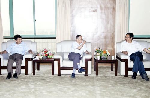 8月16日,党委书记傅克刚、校长余欢还在行政楼20楼会议室亲切会见了杨叔子院士和部分出席本次研讨会的专家代表,并介绍了今年学校60周年校庆的情况。应校领导邀请,杨叔子院士欣然为我校60周年校庆题写了“甲子年华奠好基,宏图正绘赣江西,今朝双翼冲霄上,试问天公可与齐”的贺词。