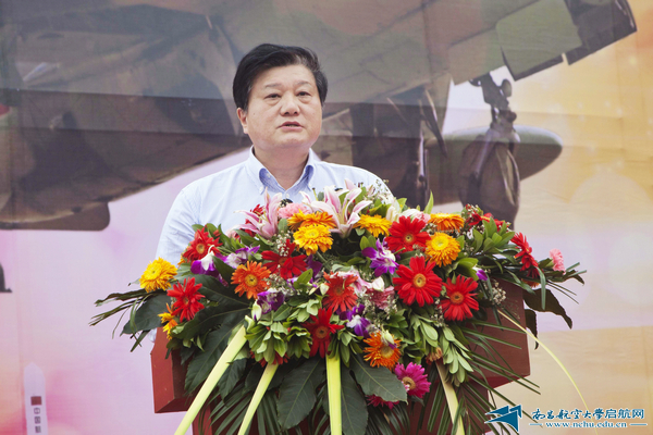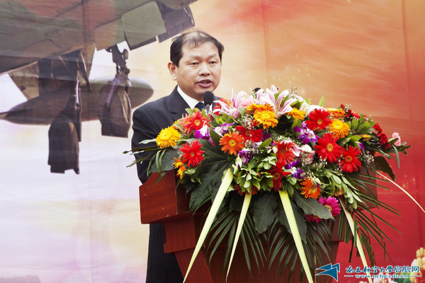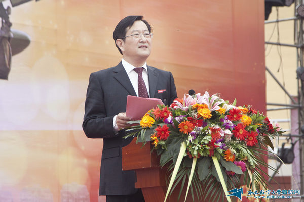 校长余欢在致辞中回顾了学校60年的历史及取得的辉煌成就。1952年3月,学校前身汉口航空工业学校诞生。从成立之初,学校就与祖国的航空工业同呼吸、共命运、心连心,“服务航空、服务国防”成为历代昌航人的自觉选择。进入新世纪以来,学校飞速发展,办学规模进一步扩大,办学层次不断提升,综合实力显著增强。学校从一所单科性学院发展成为一所多学科协调发展的多科性大学。余欢表示,学校将全面贯彻党的教育方针,遵循高等教育规律,按照省委省政府对高等教育提出的要求,坚持育人为本、德育为先,提高质量,优化结构,办出特色,主动适应经济社会发展和人的全面发展需要;着力提高人才培养质量,加大教学改革力度,全面提高学生综合能力素质,突出培养学生的社会责任感、创新精神和实践能力;加强优势特色学科建设,结合国防航空航天和江西经济社会发展需求和自身既有学科优势,突出重点,整合资源,协同创新,办出特色,努力打造航空材料与制造、测试与控制和环境工程等一批优势特色学科,为建设高水平特色大学奠定基础;加强高水平师资队伍建设,特别是高层次领军人才的引进和培养,培养一支道德高尚、敬业奉献、大气包容,具有独立人格、自由思想、批判精神、民主风气的教师队伍;探索建立现代大学制度,进一步深化改革,强化管理和服务,繁荣校园文化,建立充满活力、富有效率、更加开放的运行机制,在教育部、国防科工局及省委省政府的正确领导下,同心同德,抢抓机遇,为建设一所工科优势突出,航空特色鲜明,多学科协调发展的教学研究型大学而努力奋斗,以实际行动续写南昌航空大学的新篇章。