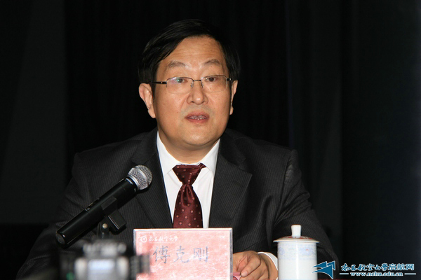 校党委书记傅克刚代表我校在开幕式上致辞。他说,在举国上下喜迎党的十八大即将胜利召开之际,在我校欢庆建校60周年华诞的美好时刻,赣、粤、桂、滇、琼五省区高校思想政治理论课青年教师教学基本功比赛又在我校拉开了序幕。他代表我校向远道而来的教育部社科司领导,向各省区教育工委和教育厅领导、评委专家、参赛教师、指导教师们表示热烈的欢迎和衷心的感谢。傅克刚介绍了我校的基本情况。他说,目前学校正朝着工科优势明显、航空特色鲜明、多学科协调发展的教学研究型大学的目标阔步前进。傅克刚指出,本次比赛在我校举行,是上级部门对我校的充分信任和支持,也是一次难得的学习机会。学校一定会珍惜这个机会,一方面积极参与,充分展示我校思想政治理论课的教学水平和教师风采,另一方面,我们将会认真学习和借鉴兄弟高校先进的教学方法和教学理念,互相切磋、取长补短,进一步提升我校思想政治理论课建设的水平和质量。同时,我们也将会竭尽全力提供优质的服务和保障工作,确保比赛能够顺利、圆满地进行。他最后祝本次比赛取得圆满成功,并祝各位参赛选手取得优异成绩!