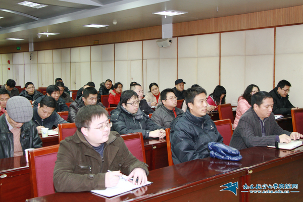 启航网讯 12月27日,学校副校长唐星华在办公楼六楼视频会议室作了“学习贯彻十八大精神建设和谐平安校园”的十八大精神专题辅导报告,保卫处专职综治干部,各综治责任单位兼职综治干部聆听了报告。